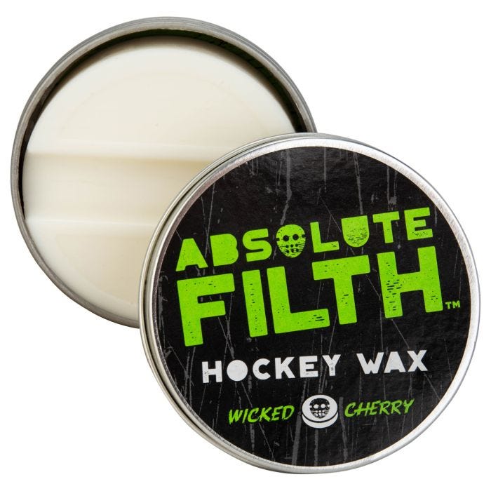 - WICKED CHERRY SCENT - This wax features a pleasing cherry scent. Absolute Filth Hockey Wax will not be filthy to apply. It comes in a slip top, rust proof tin that can take the punishment of living in a hockey bag with your accessories.