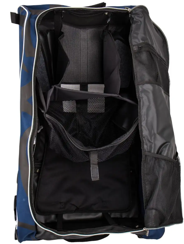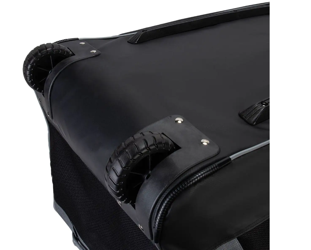 CCM 580 Elite 32in. Wheeled Hockey Equipment Bag The CCM 580 Elite 32" Wheeled Hockey Equipment Bag features a durable mix of tarpaulin and 600D polyester with PVC coating, plus 2 heavy-duty all-terrain wheels and a telescopic handle for easy transport. It includes removable skate and helmet dividers, a stick sleeve, mesh side paneling, multiple pockets, and a U-shaped YKK main zipper for organized gear storage.