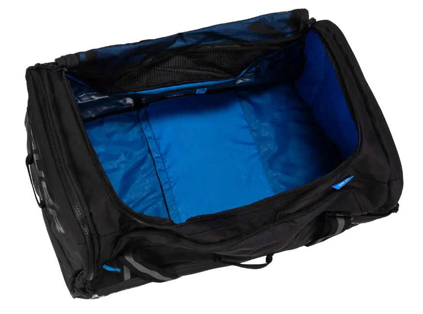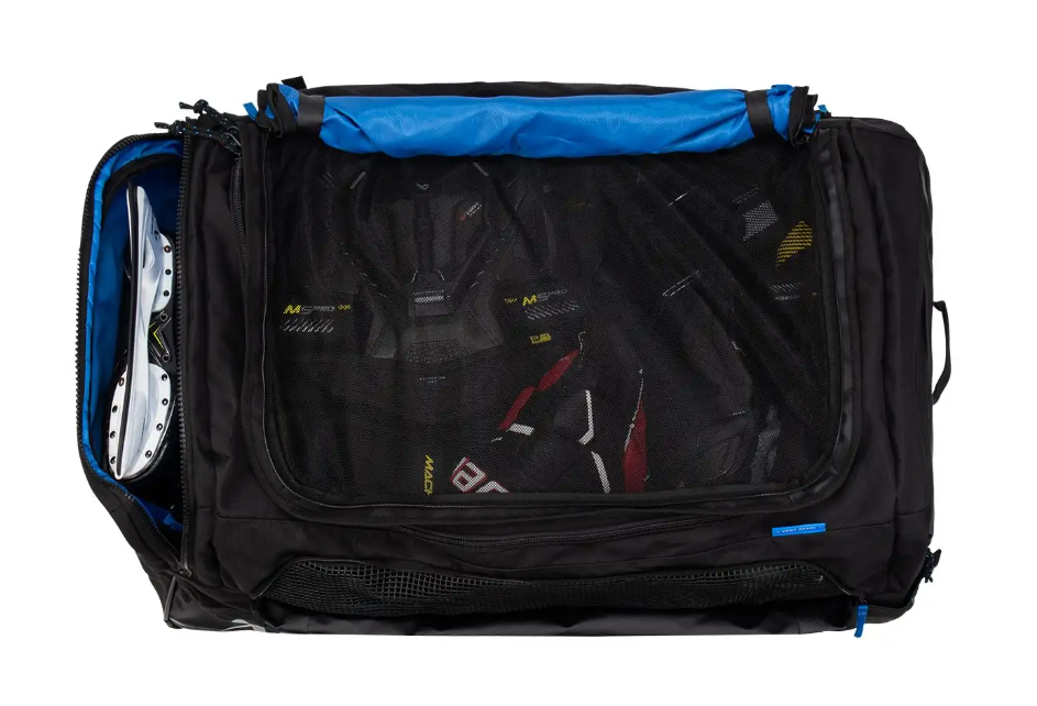 Bauer Pro Duffle Bag: The Bauer Tactical Duffle Bag's design prioritizes flexibility and robustness for active players. Made from heavy-duty 840D with TPU backing and a ripstop top panel, it ensures lasting durability. Features like a large main compartment, separate end pocket, hidden external organizer, and premium handles with an adjustable shoulder strap make it both practical and comfortable for transport. Its compact dimensions and resilient construction make it a standout choice for athletes looking for a reliable duffle bag solution