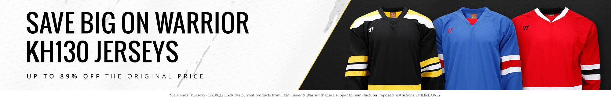 For the month of June, take advantage of the lowest prices of the year on Warrior KH130 jerseys, no coupon code required!